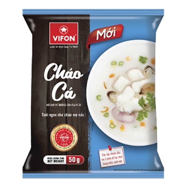 Sản phẩm cháo ăn liền tiện lợi đến từ thương hiệu cháo Vifon. Cháo Vifon vị cá gói 50g được làm từ các nguyên liệu tự nhiên, không phẩm màu tổng hợp, không chất bảo quản an toàn cho sức khỏe, cháo vị cá chất lượng thơm ngon, đầy đủ dinh dưỡng cho một bữa ăn với cách chế biến cực nhanh và đơn giản.