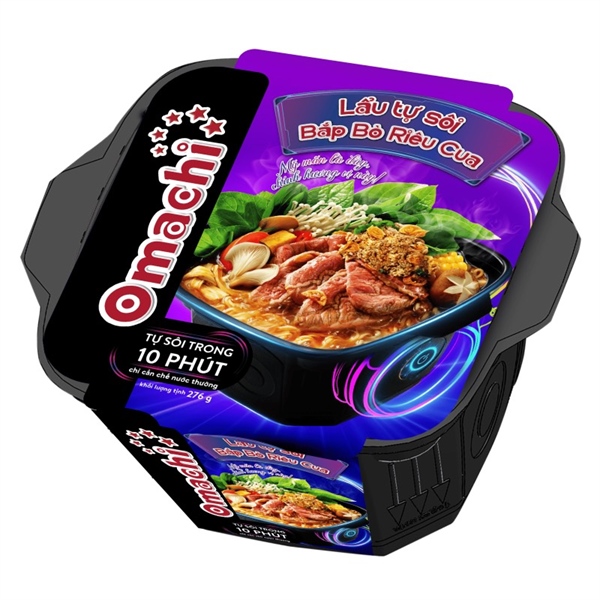 Sản phẩm lẩu tự sôi tiện lợi độc đáo đến từ thương hiệu mì Omachi chất lượng. Lẩu tự sôi Omachi Bắp bò riêu cua hộp 276g lẩu tự sôi chỉ với 10 phút mà không cần dùng nước nóng, nhiều gói topping thật dinh dưỡng cùng sợi mì khoai tây dai ngon, tiện lợi sử dụng mọi lúc mọi nơi